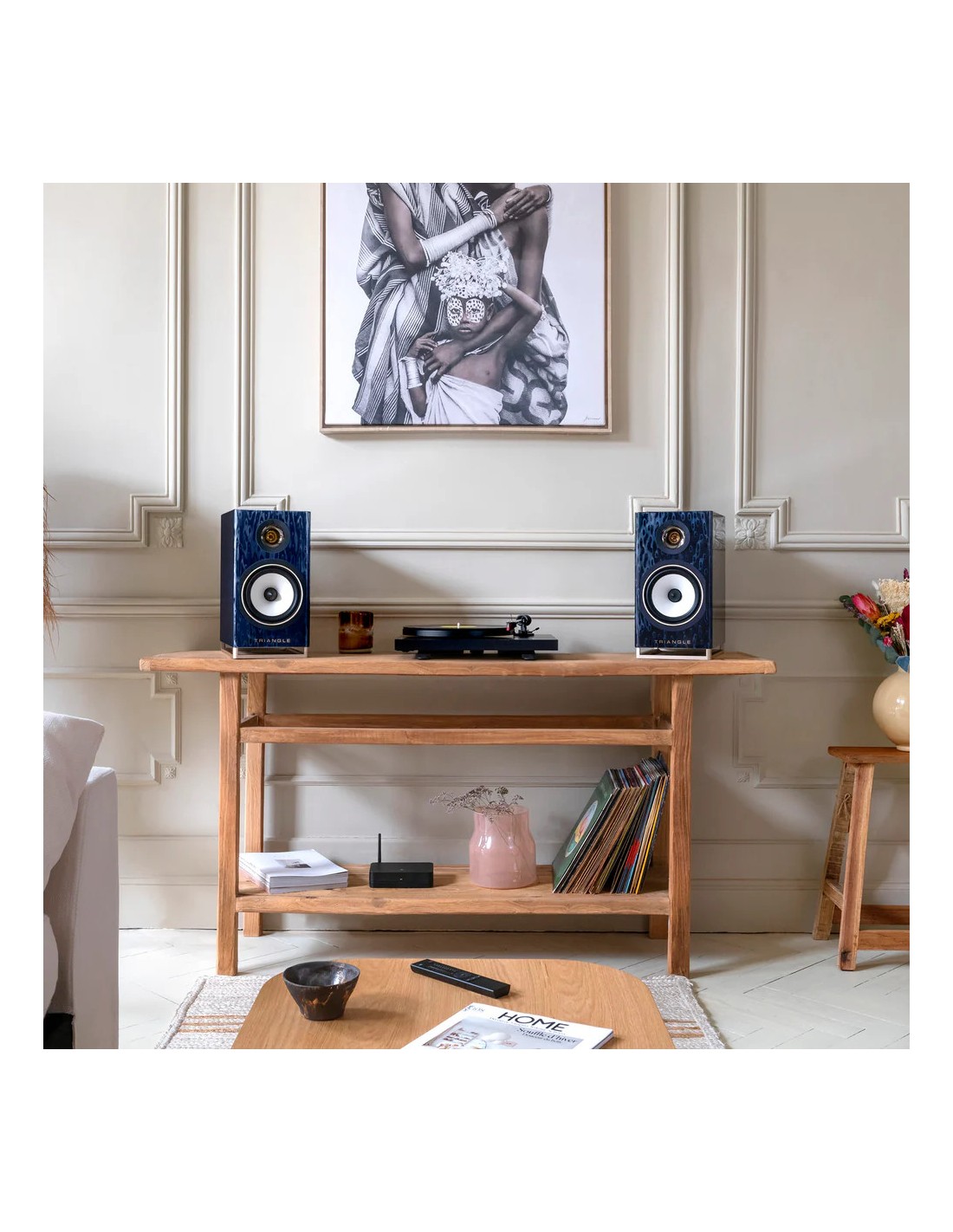 * Полная система, готовая к прослушиванию. Каждый динамик имеет собственный усилитель и беспроводным способом связывается со стереоконцентратором.